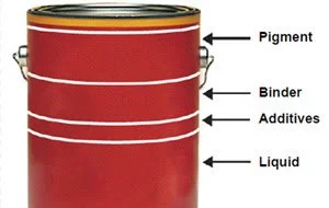 “All paints generally have four main ingredients -- pigments, binders, solvents (liquids) and additives. Pigments provide color and hide, while binders work to "bind" the pigment together and create the paint film. Solvents are the liquids that suspend the ingredients and allow you to place the paint on the surfaces, and additives are ingredients that provide specific paint properties such as mildew resistance. All four ingredients combine to provide paint that meets your specific needs.”